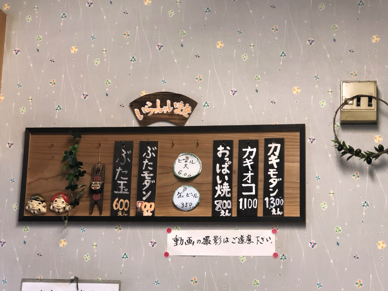 お品書きは、カキモダン、カキオコ、おっぱい焼、