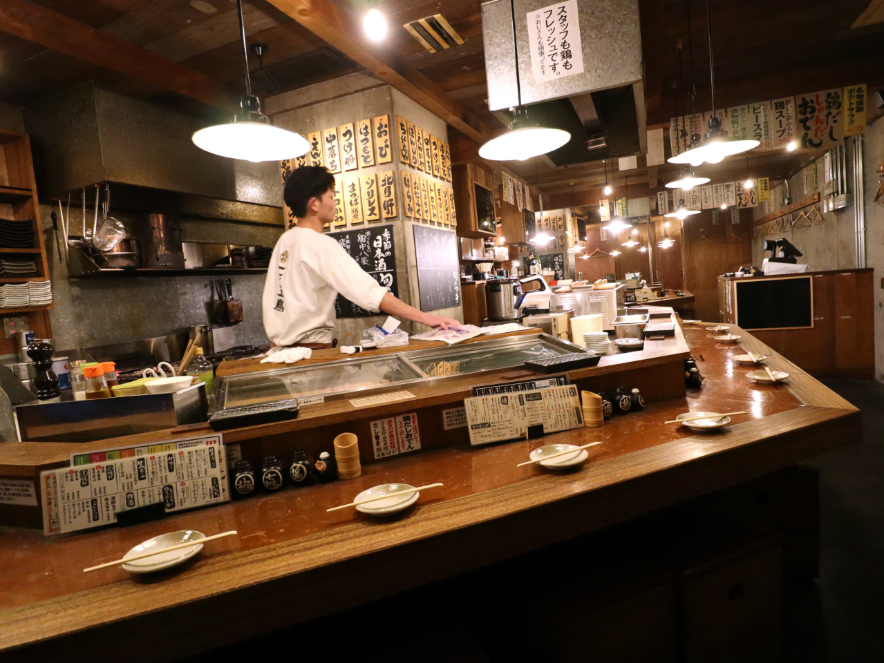 店内は、真ん中に大きな鉄板があり、その周りに7席。