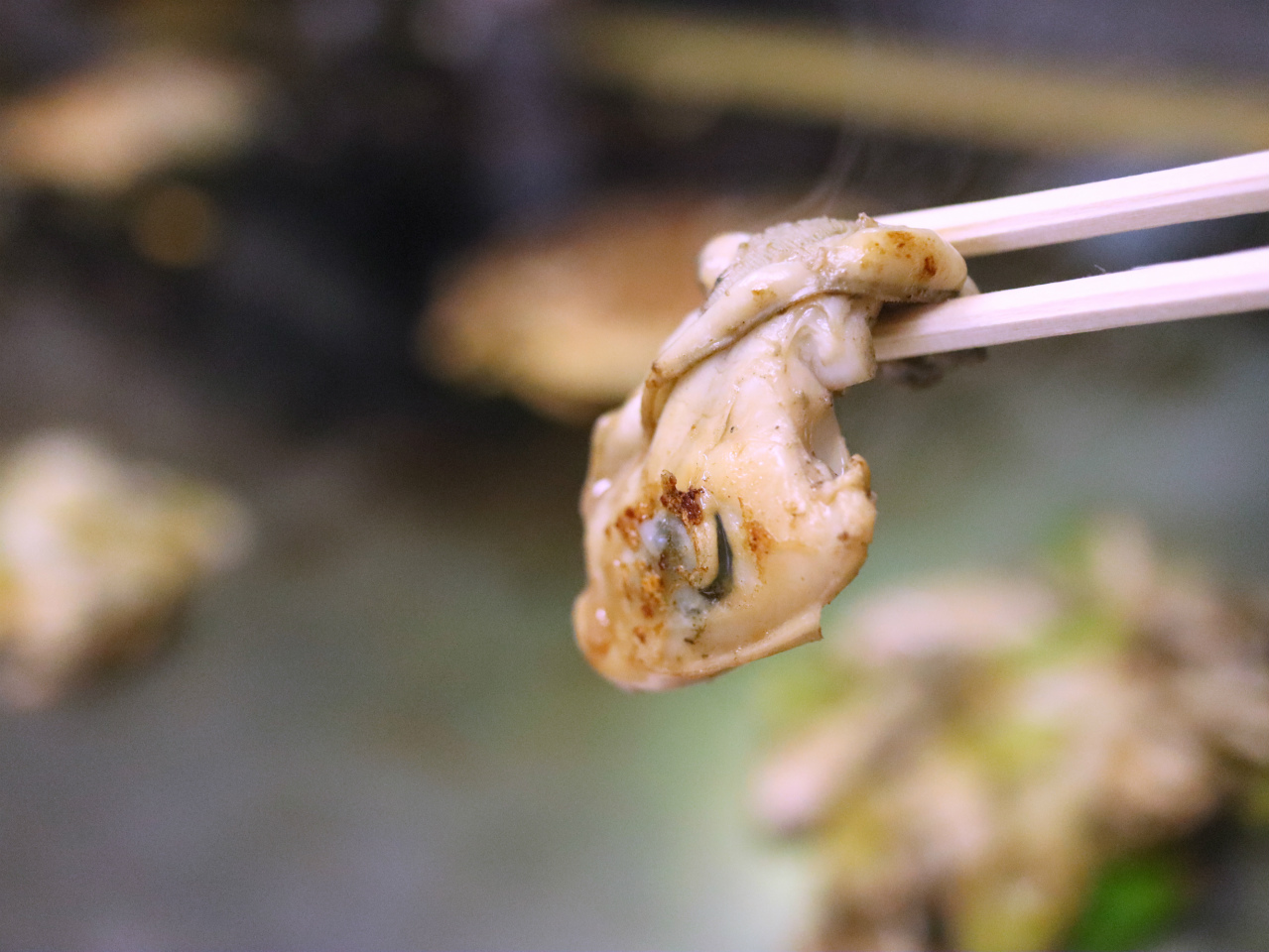 牡蠣を絶妙な焼き加減と味付けで仕上げた、おっぱい焼。