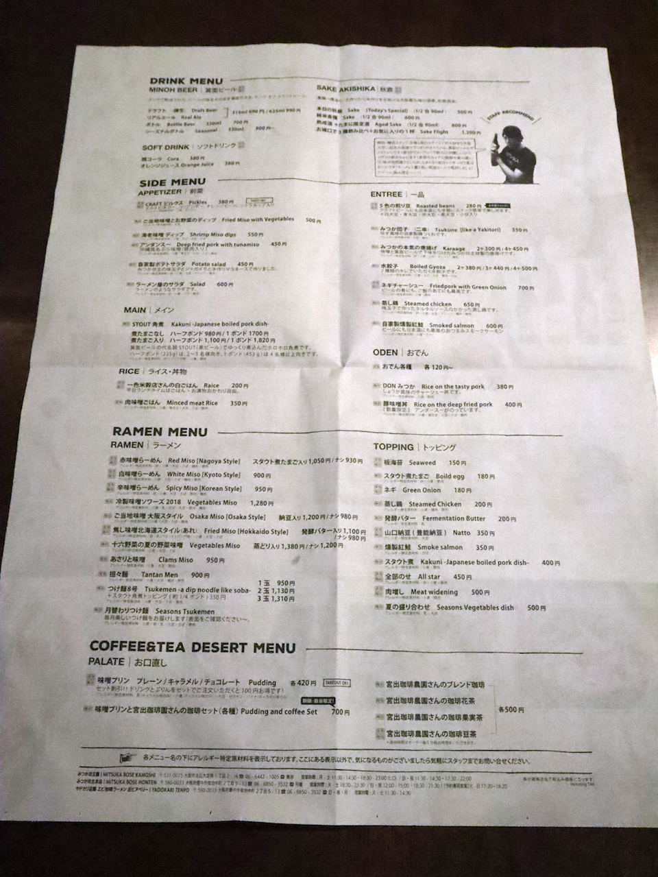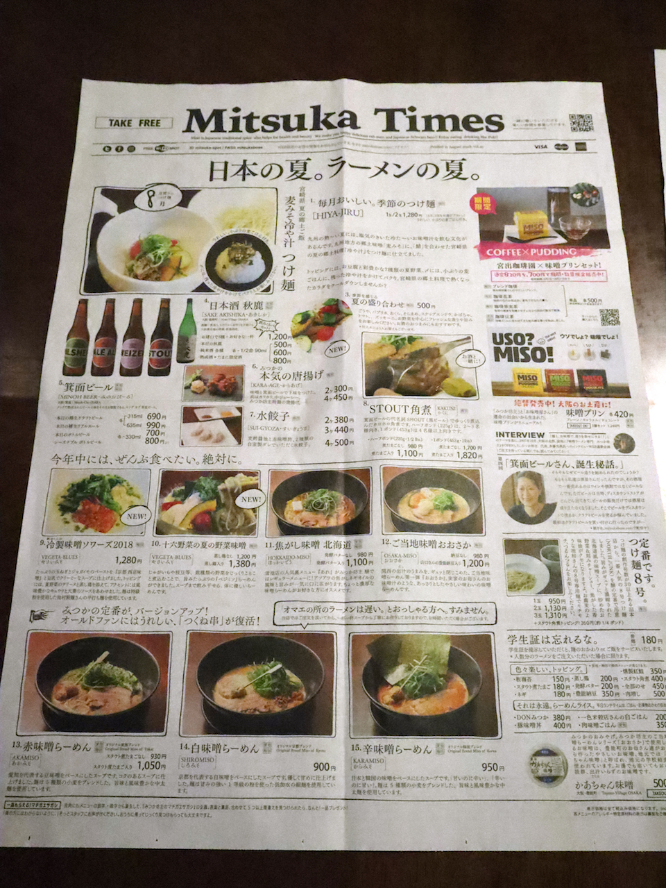 「Mitsuka Time」と書かれた、ニュースペーパーのようなこれがメニューになっています。