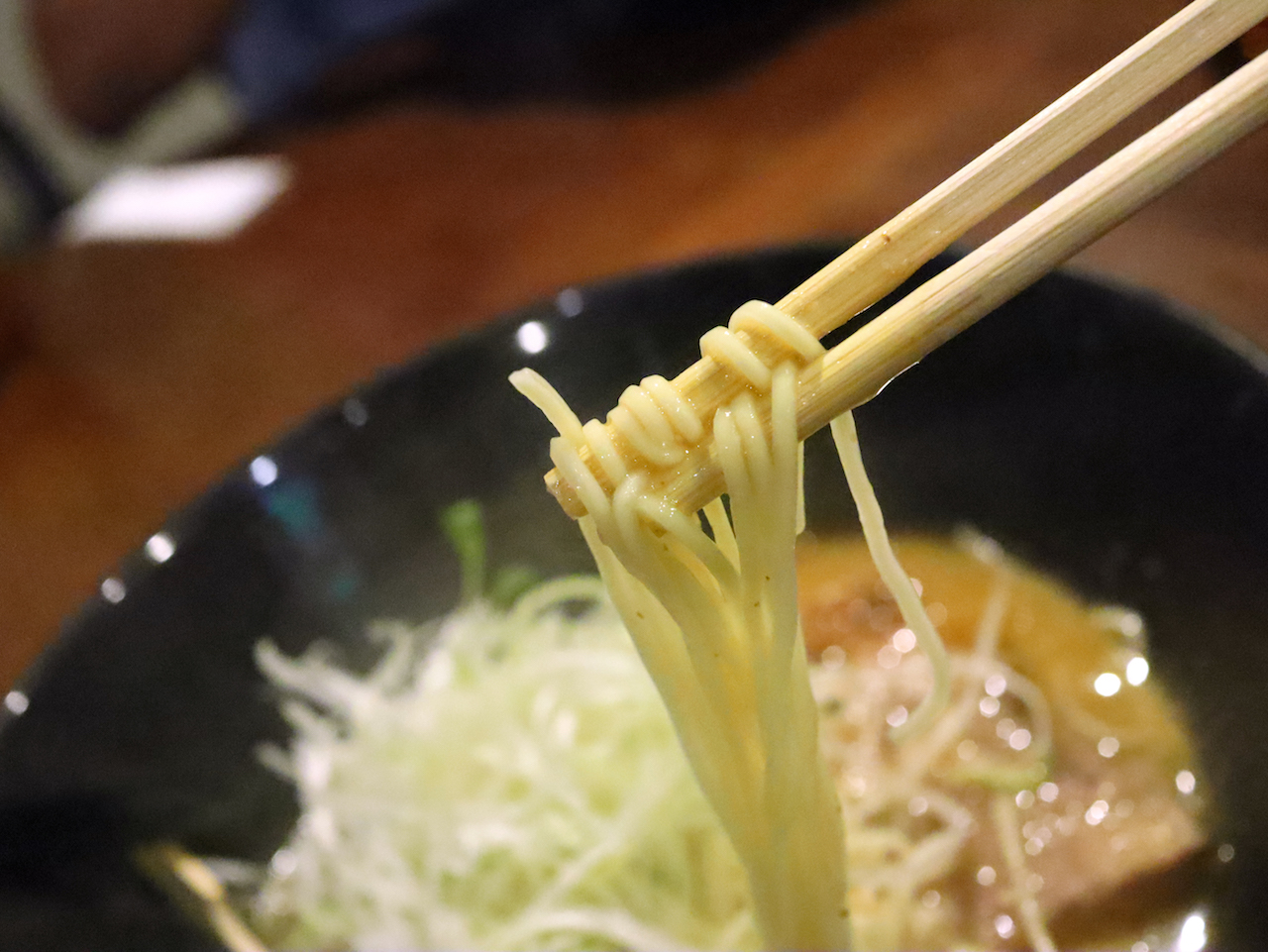 味噌ラーメンって、中太の縮れ麺って言う固定概念があったから、サプライズですね。