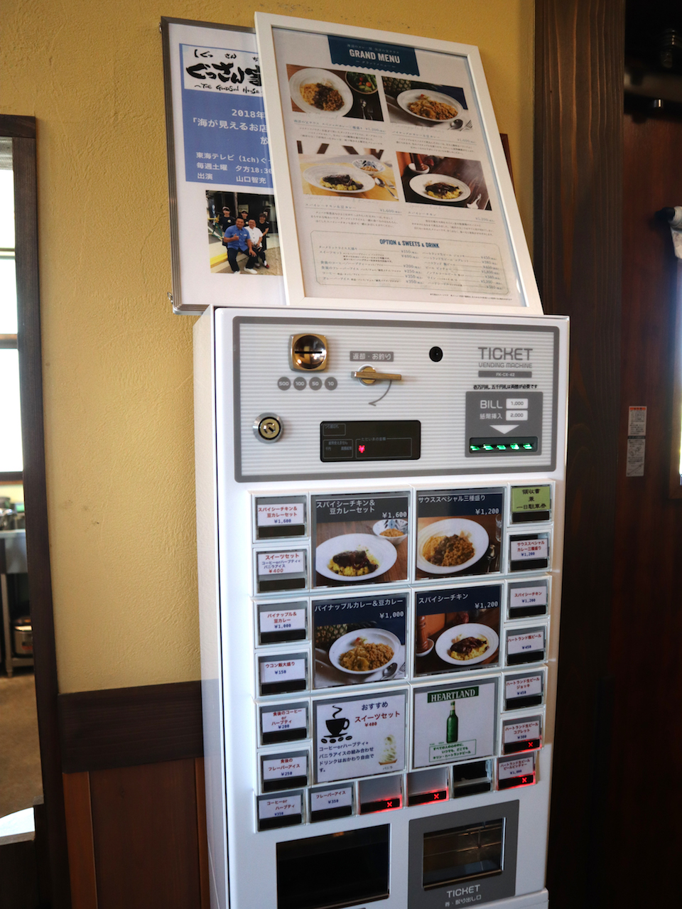 入口を開けると、食券の券売機があります。