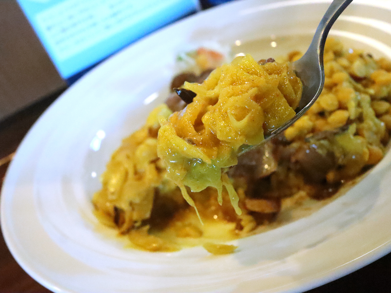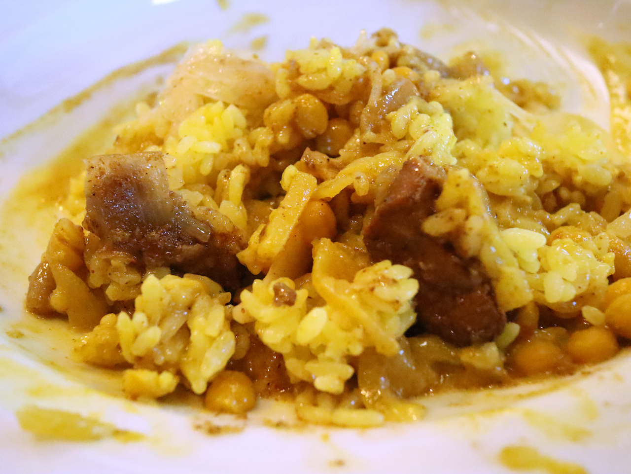 スパイスの香りと旨味の中にパイナップルの甘酸っぱさがある。