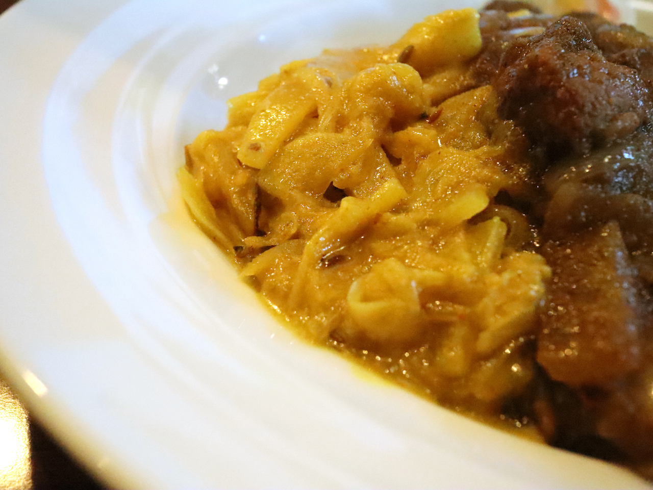柔らかく煮込まれたポークとタマネギがゴロゴロ入っていますね。