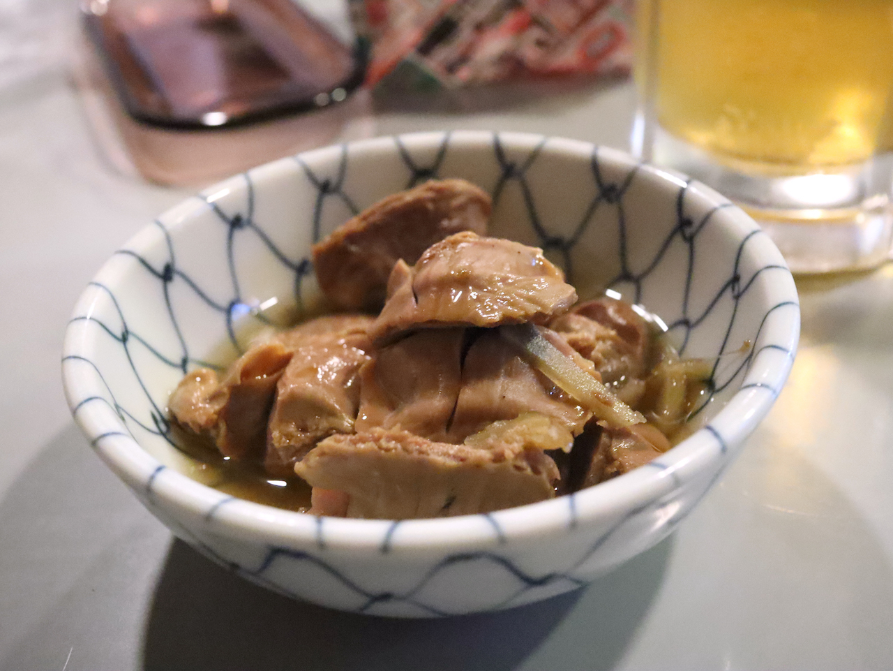 タイミングを見計らって、ザンギ、骨なしザンギ、そしてもつ煮込みをお願いします。