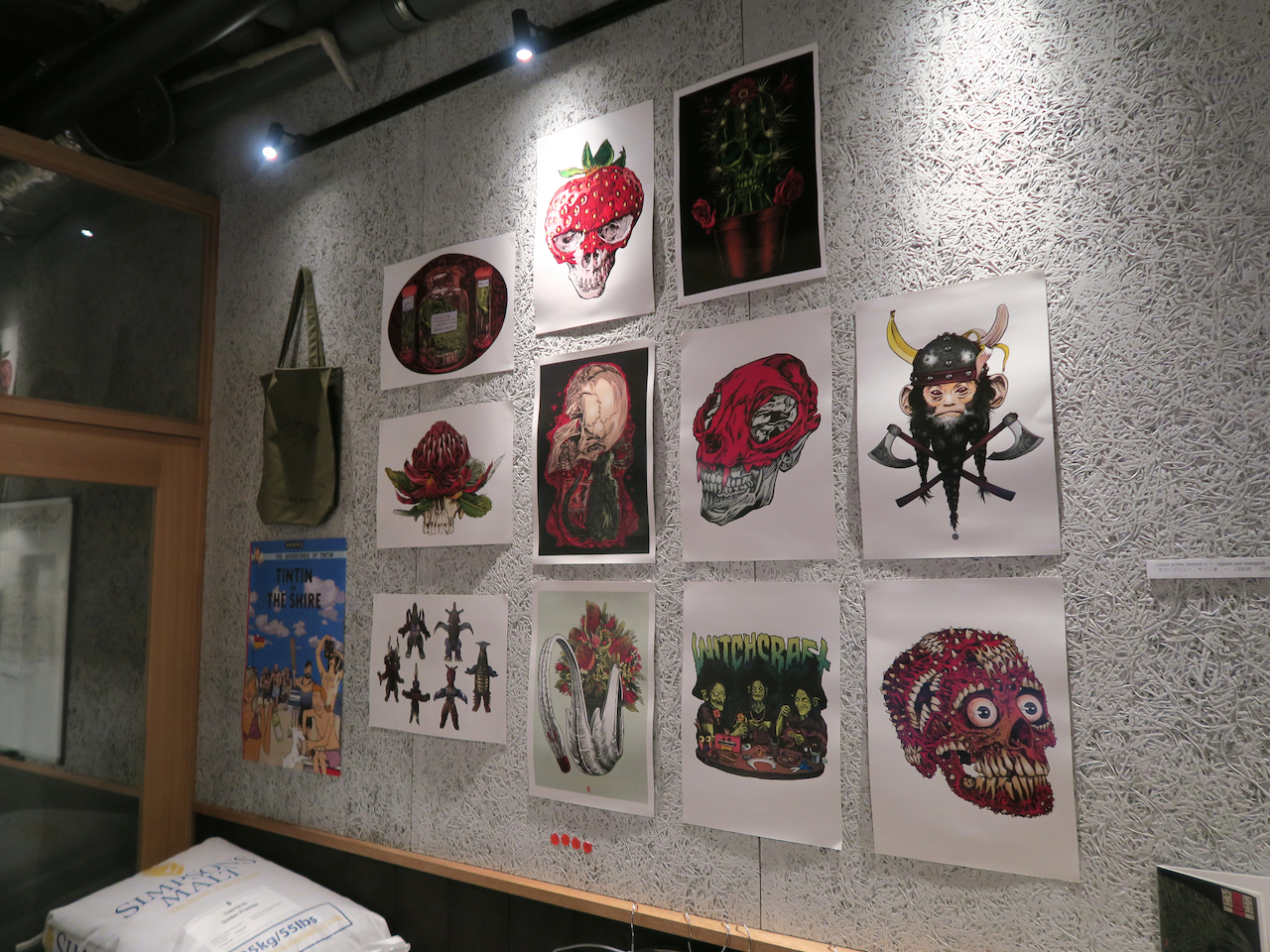 壁に貼ってあるアートは、販売もしているのだとか。
