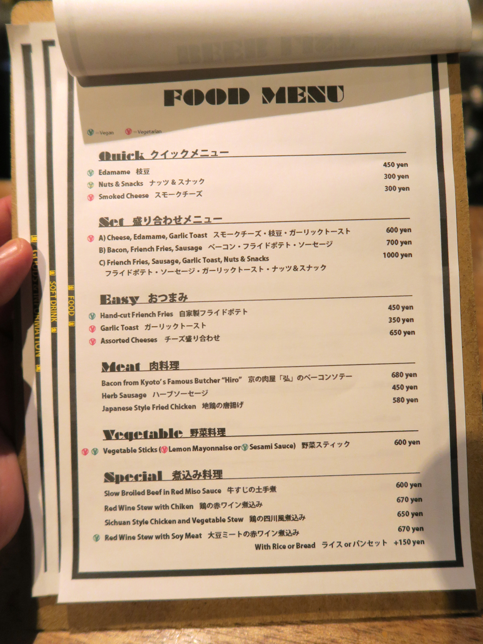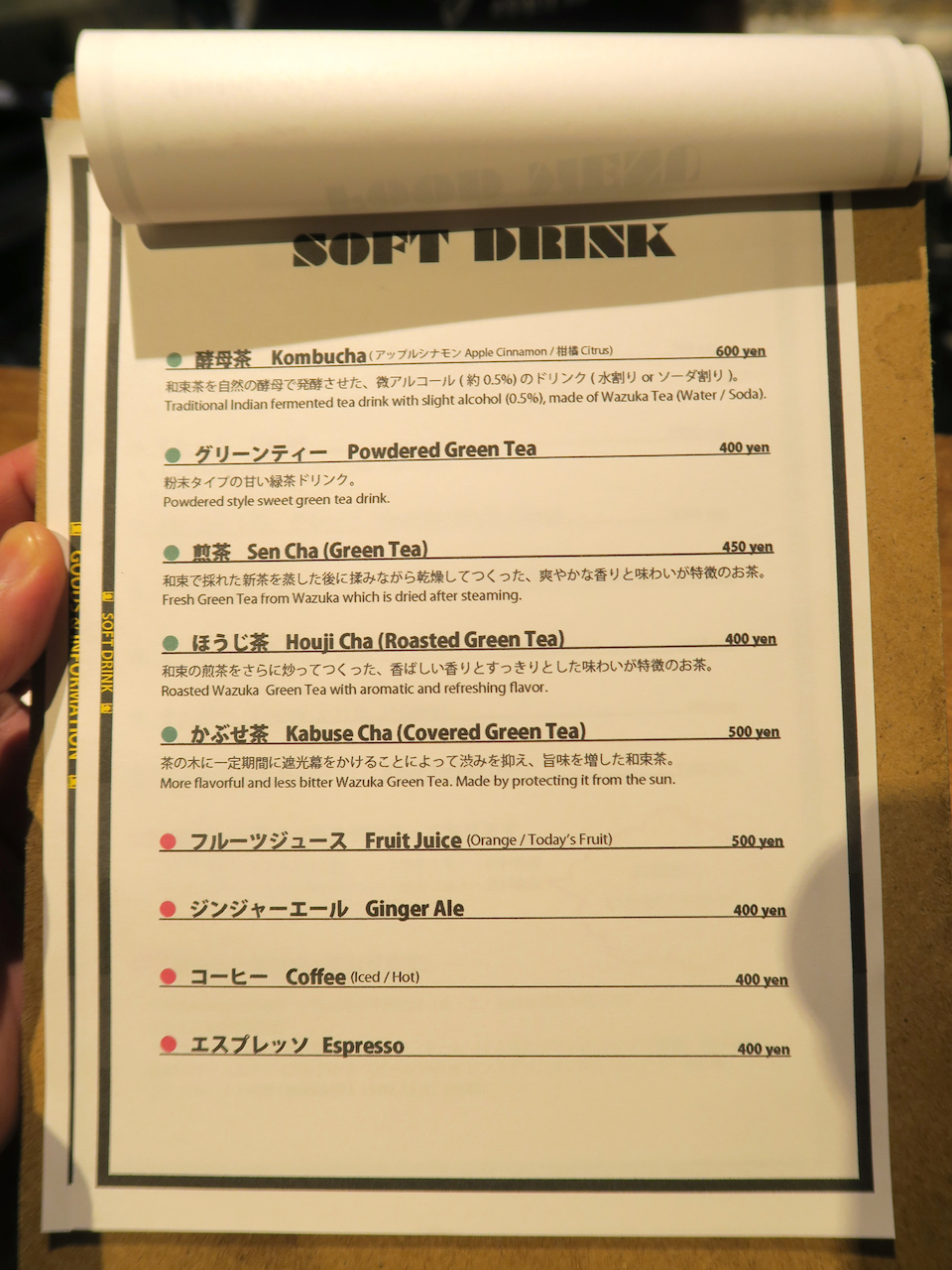 黒板メニューの他に、カウンターの上にメニューが置いてありますよ。