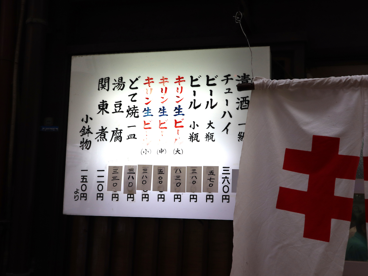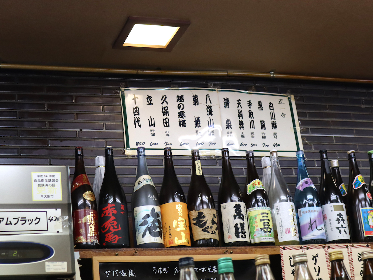 入り口の横には、お酒や料理の値段が書かれた表示もあり、安心感もあります。