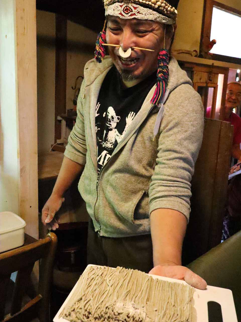 蕎麦を注文すると、店主APOさんが蕎麦を打ち始めてくださいます。