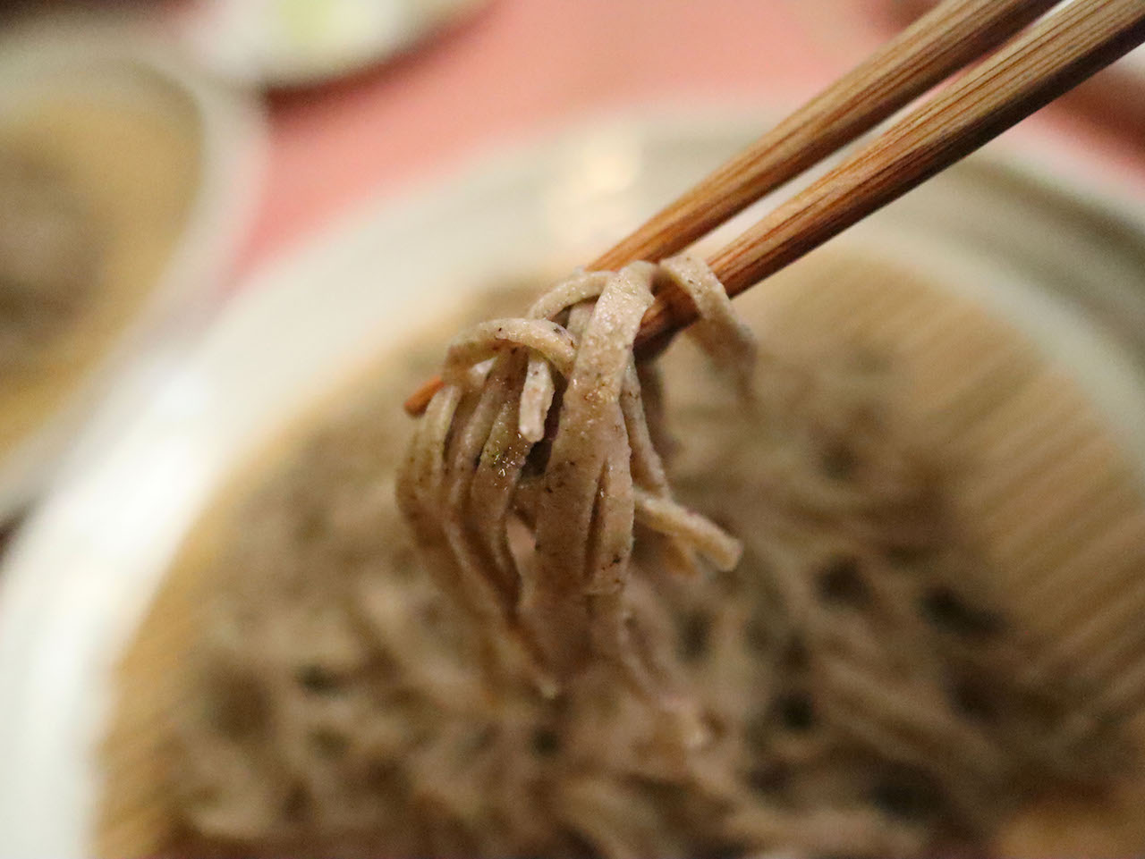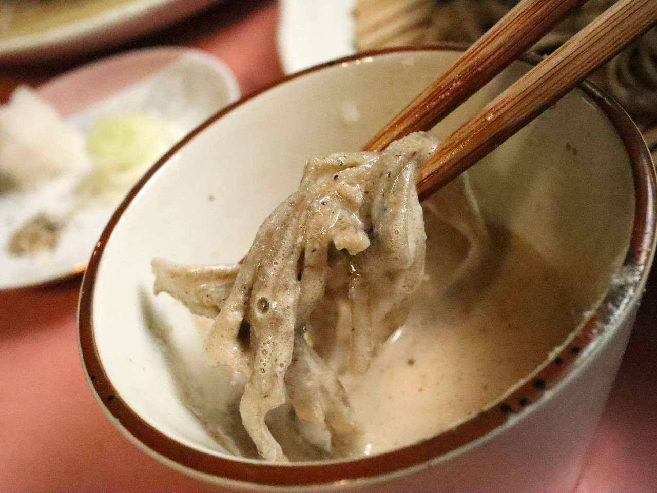 そして、次はもう一つのそばつゆ、くるみ汁でいただきます。