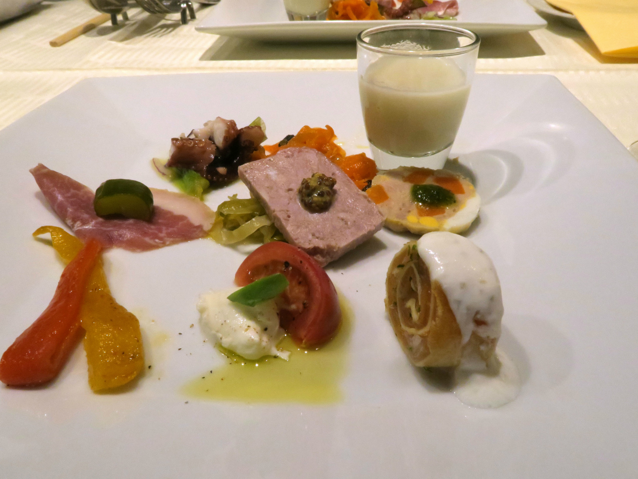 そして、アンティパストミスト(冷たい前菜の盛り合わせ)