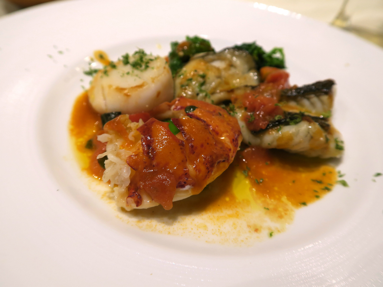 この日は、オマール海老とホタテ、そしてスズキのソテー。
