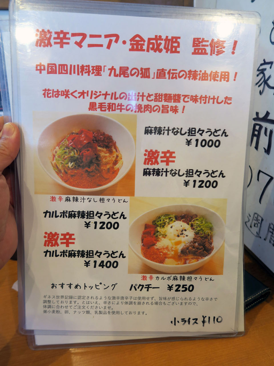 カウンターのところに貼ってあるPOP。