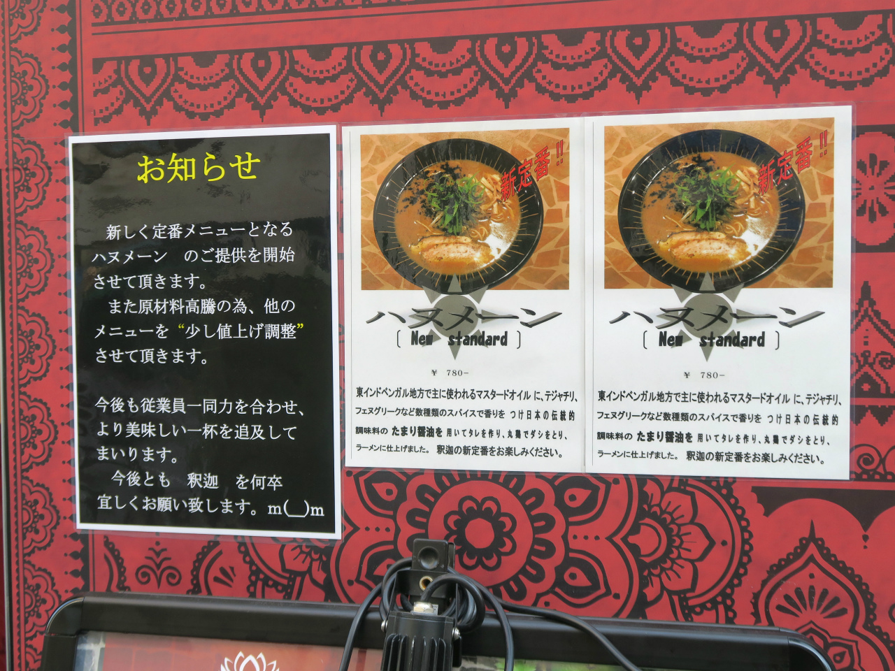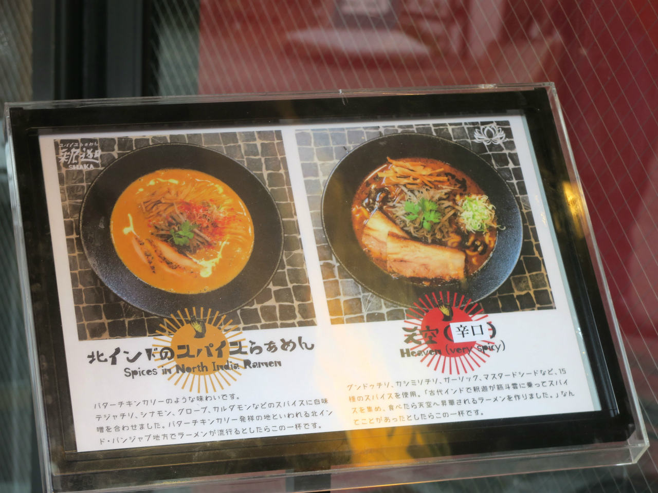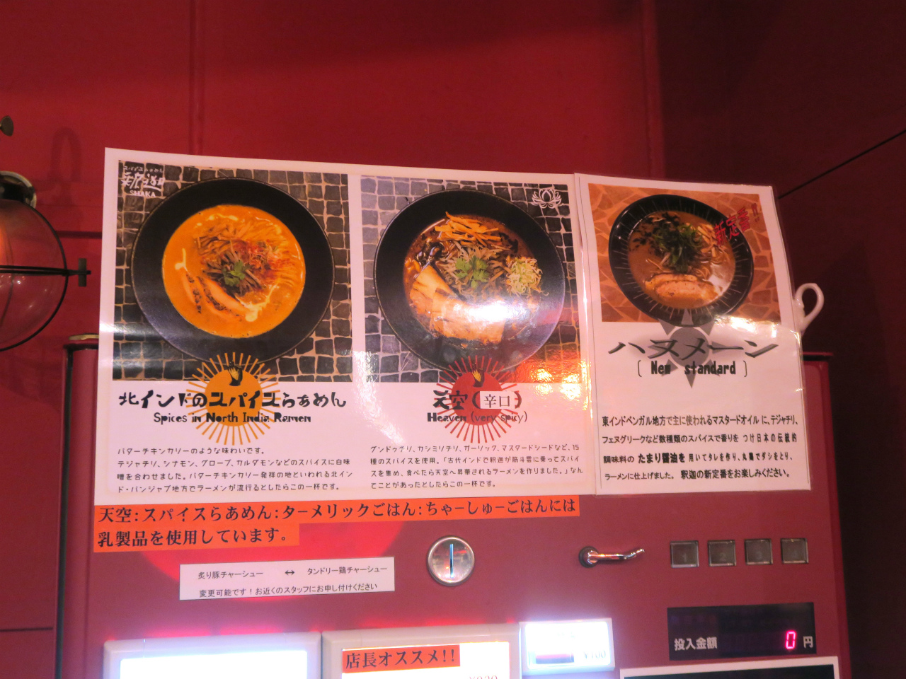 こちらのラーメンは、北インドのスパイスラーメンと、辛口の天空の二本立て・・・