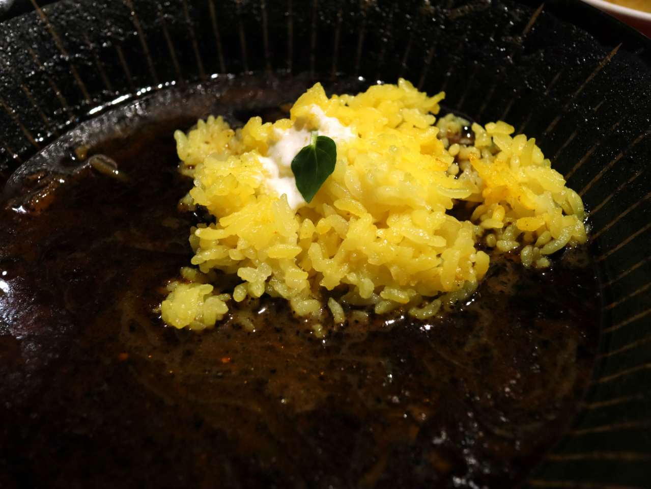 ターメリックライスを残ったスパイススープの中にダイブ!