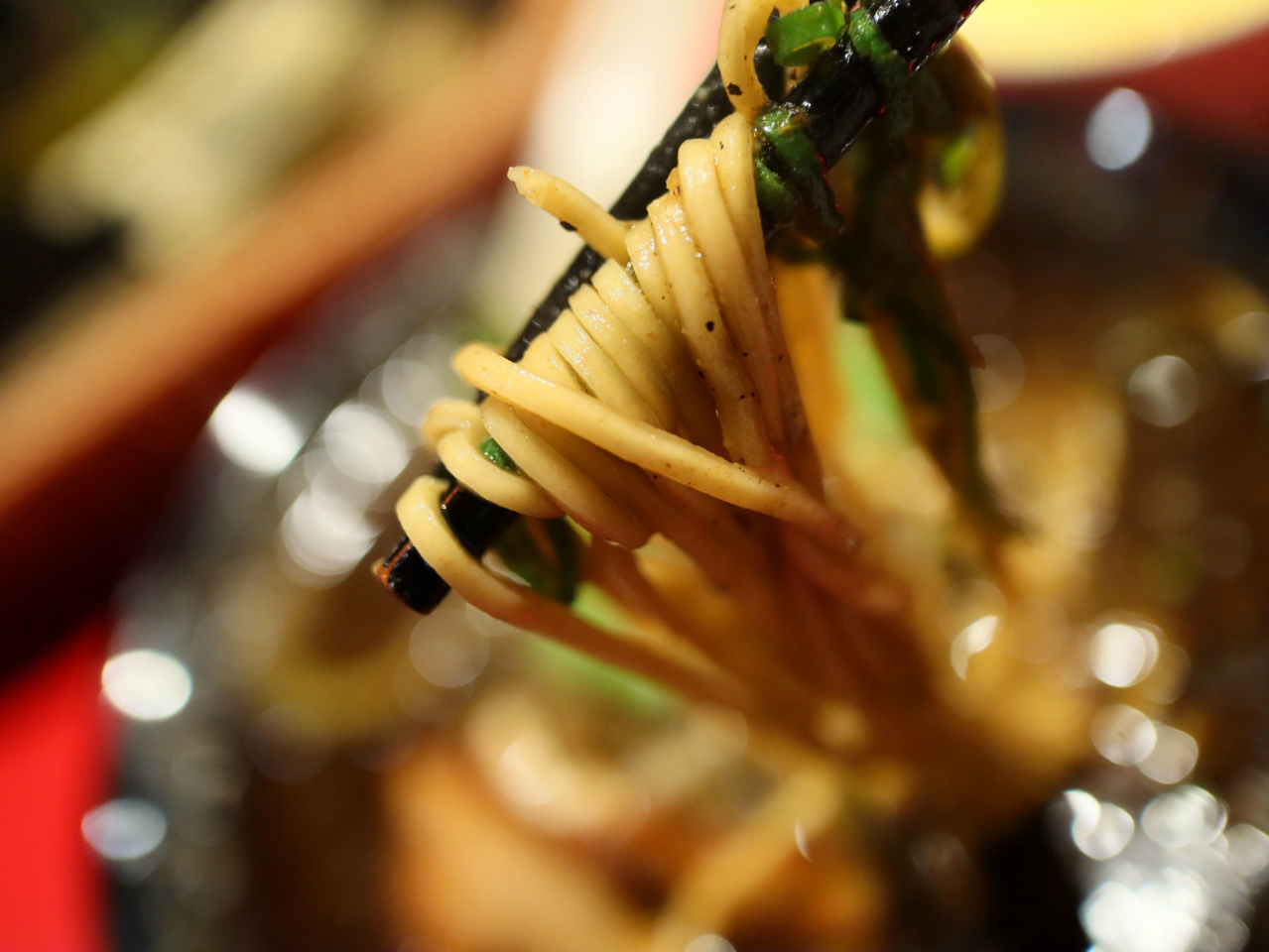 この麺、細めのストレート麺ではありますが、ものすごくスープが良く絡みます。