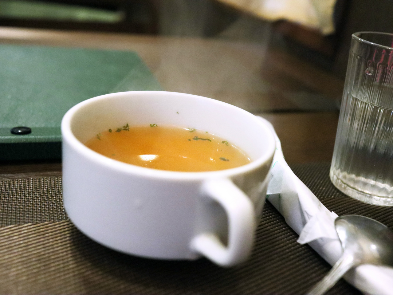 そんな妄想に走っていると、先にスープが運ばれてきました。