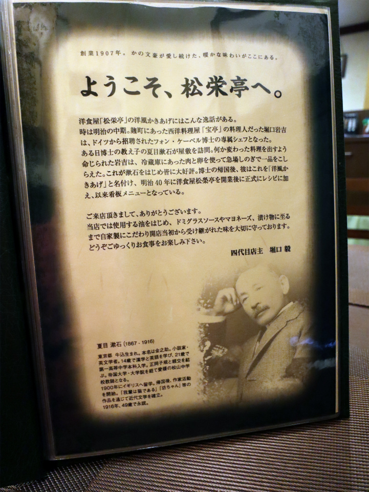 というわけで、夏目漱石が愛した「洋風かきあげ」を食べることが出来るお店、