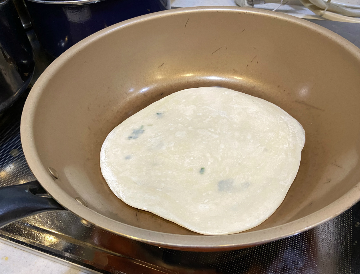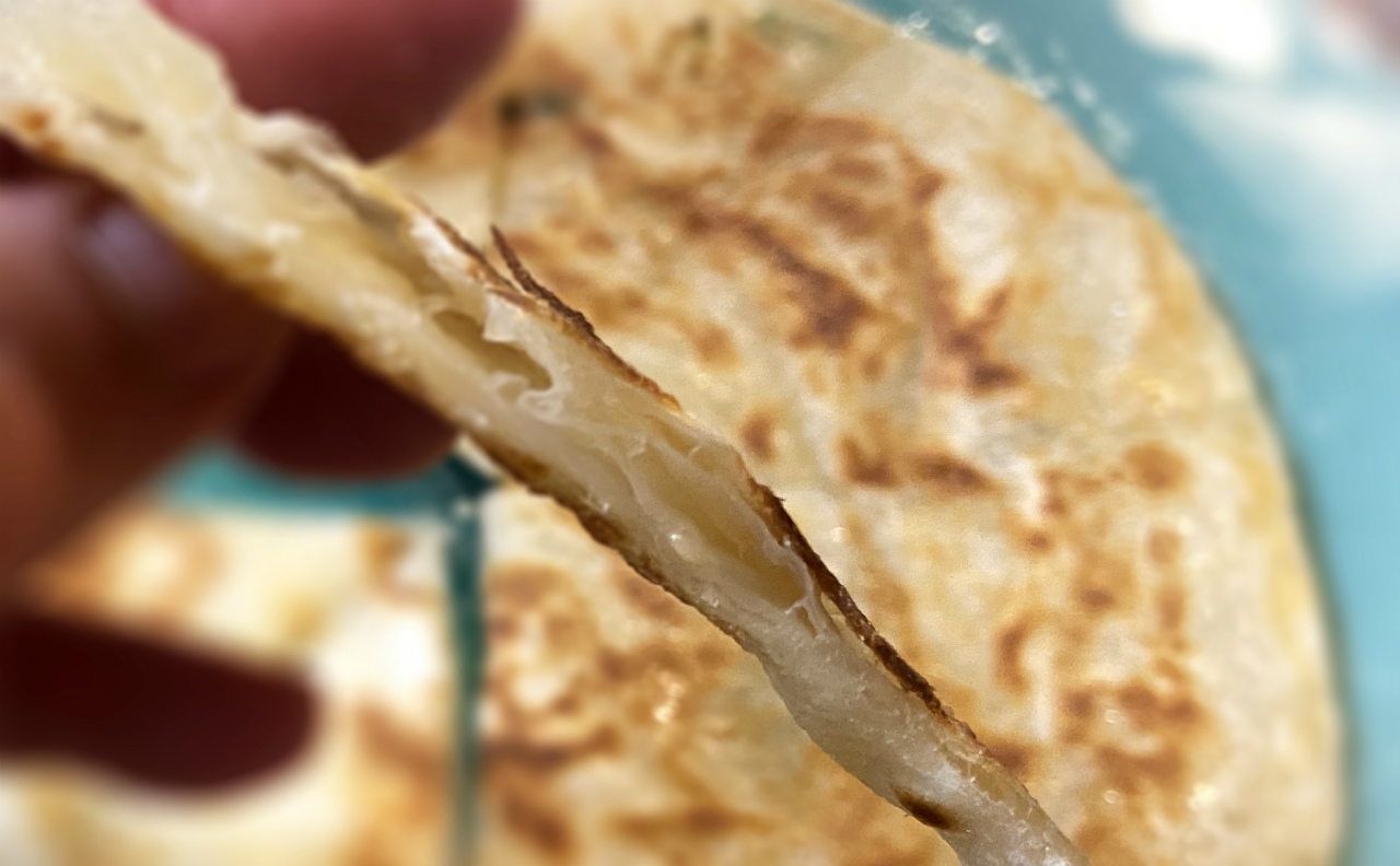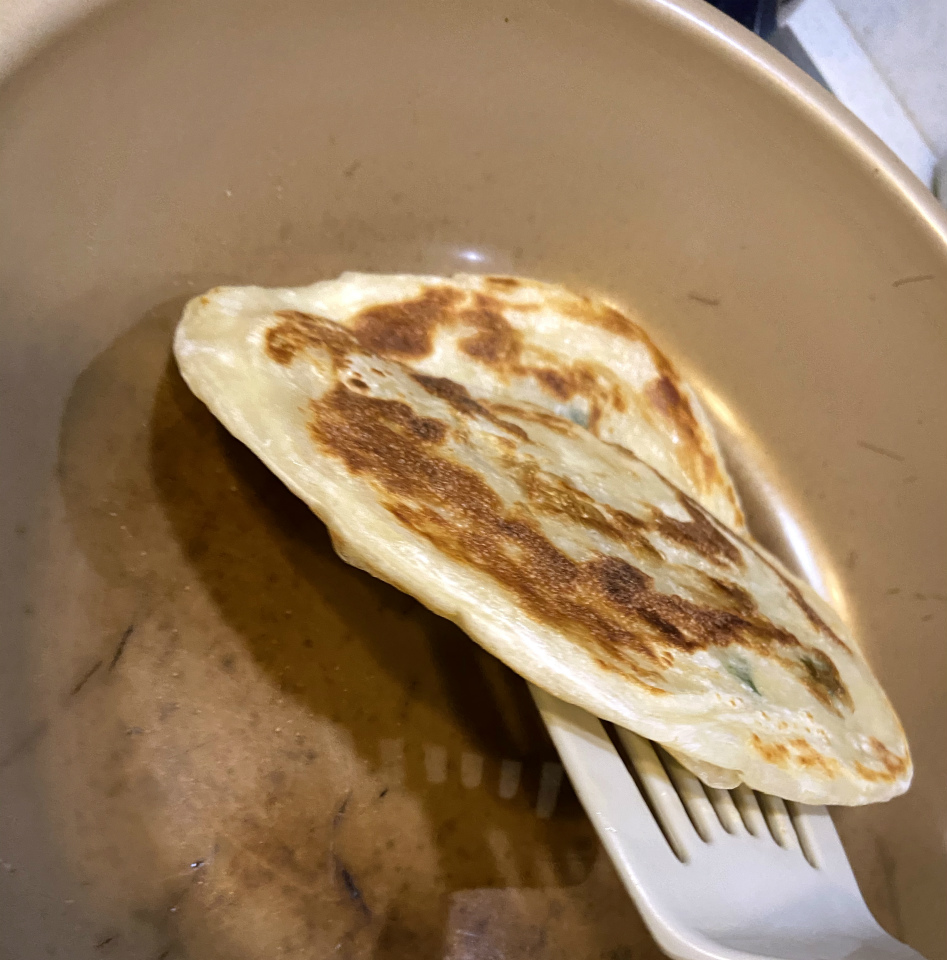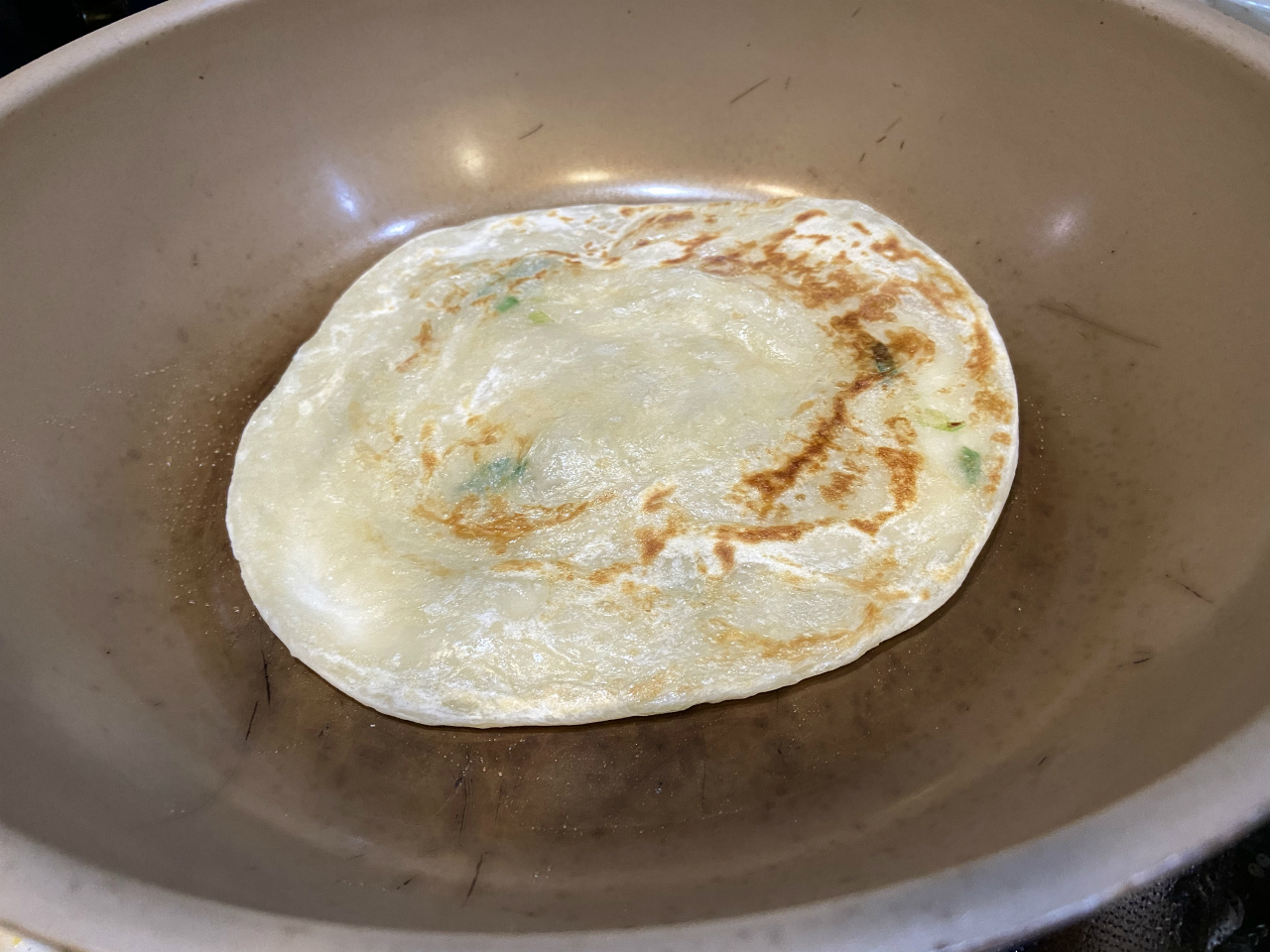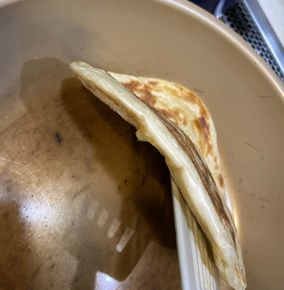 台湾の屋台で売られているネギが入ったクレープのようなアレです。