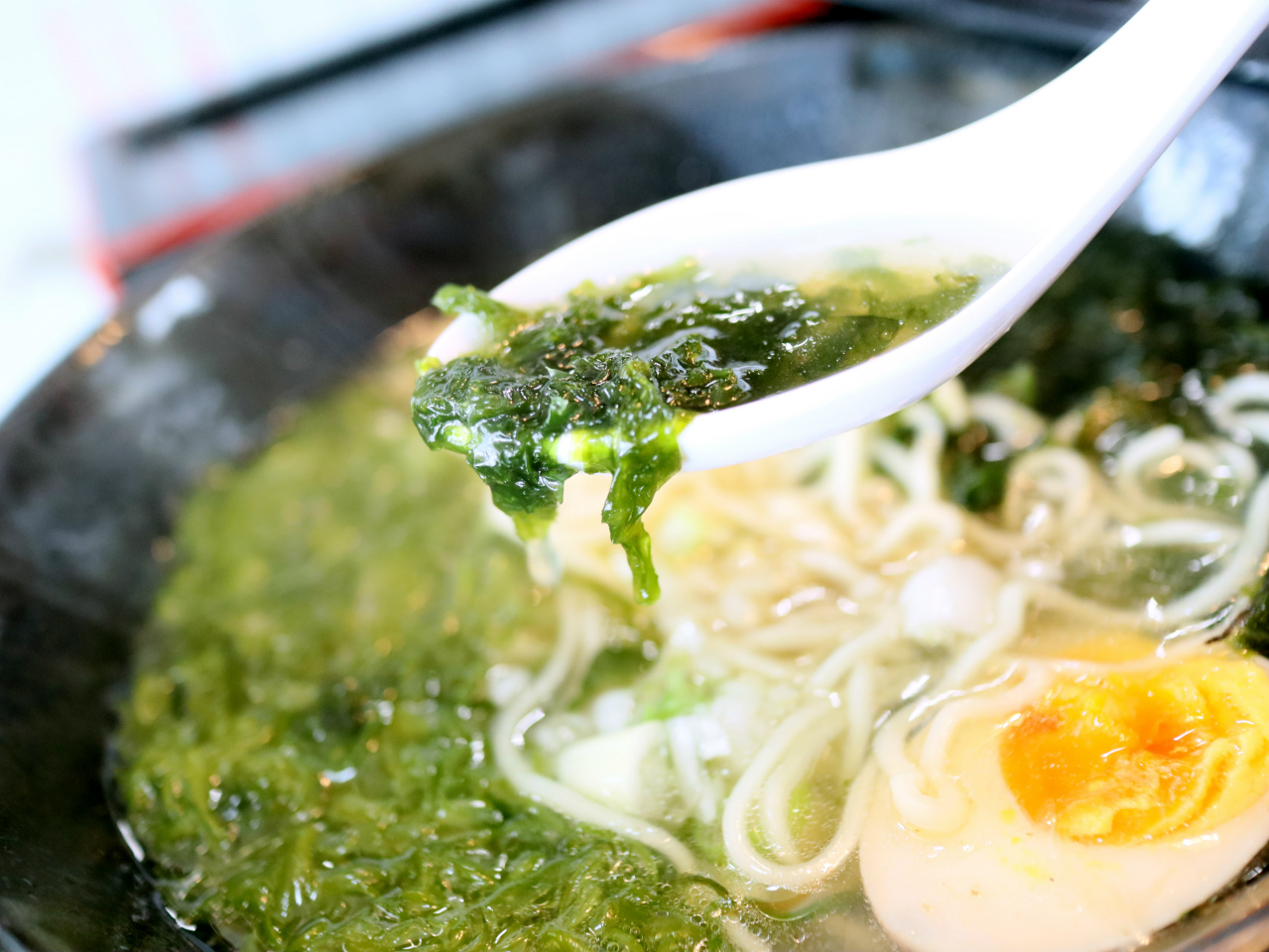メカブと海苔に覆われた、海の旨味満タンのラーメン。