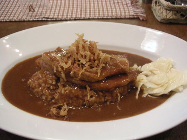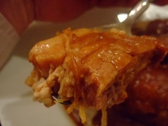 そして、厚切りの豚肉はホントに柔らかく煮込まれていて、スプーンで簡単に切ることが出来ます。