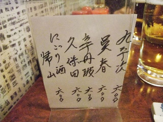 お酒のメニューも、醸し人九平次があったりと、なかなかのものです。