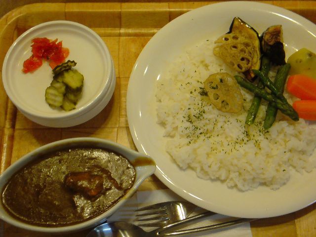 で、注文して、しばらく待っていると、やってきましたカレー屋LOVE・・・もとい、コーヒーショップLOVE特製のチキンと野菜のカレー!