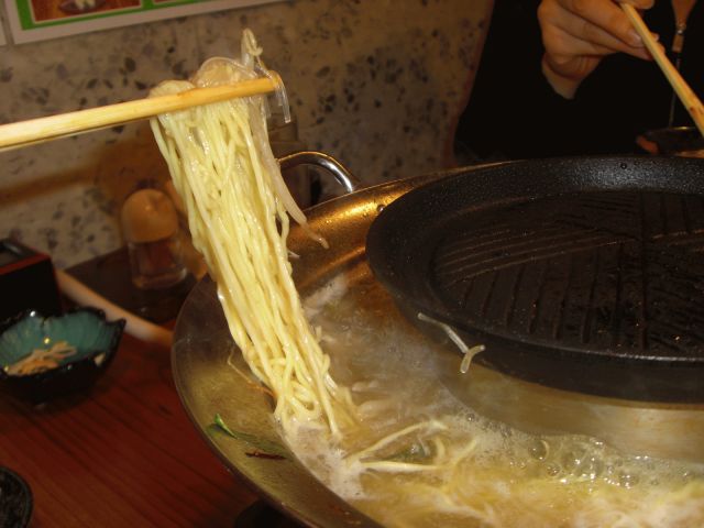 鍋のお肉がそろそろなくなるころに、鍋を模様替えしているではありませんか?!