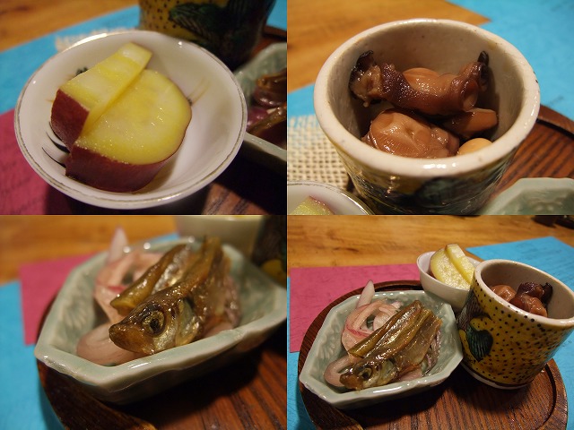 この八寸ってホント手間がかかってると思います。でも、これを少しずついただきながらちびちび飲む焼酎が最高です。この日は少量ずつかなりの種類の焼酎をいただきました。