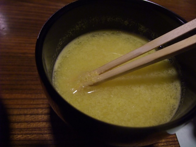 とろみがかった濃厚な蕎麦湯を蕎麦つゆで割っていただきます。