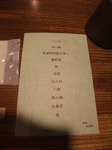 今回は“つくね” “冷山盛” “武蔵野流粗すまし”・・・