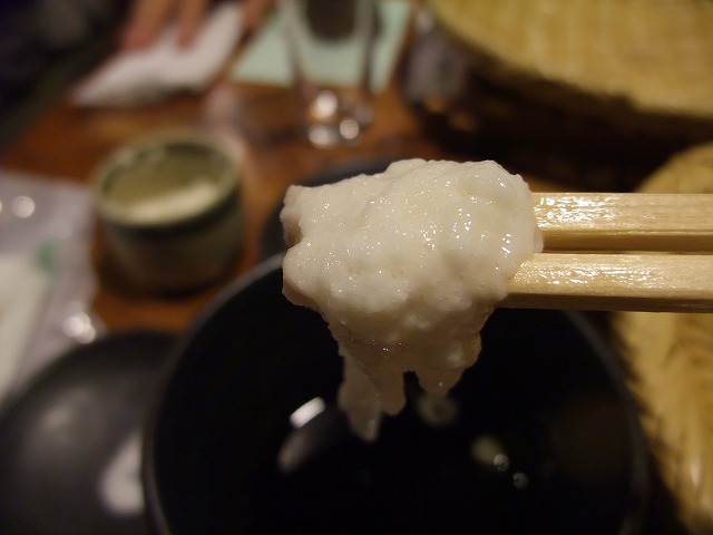 まず、荒挽き蕎麦をいただきます。今回は蕎麦つゆ、塩にくわえてつくねいもが添えられています。これが、、メニューの“つくね” “冷山盛”ですね。