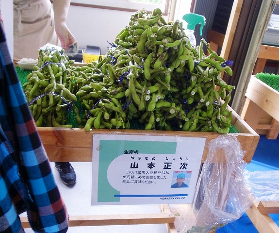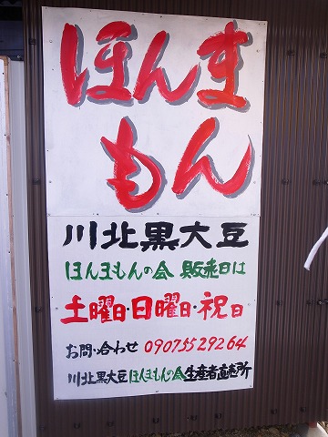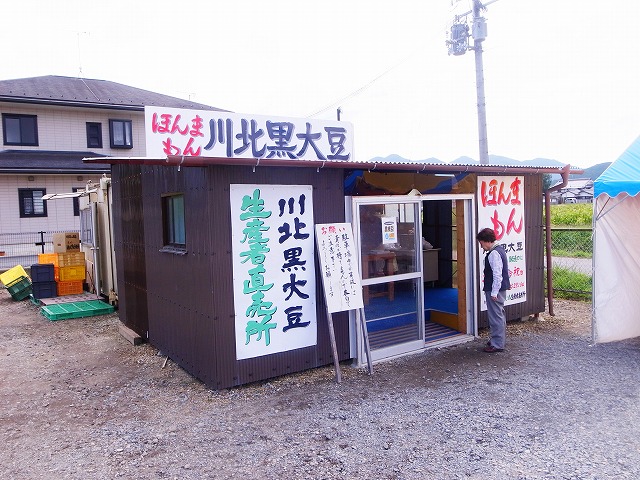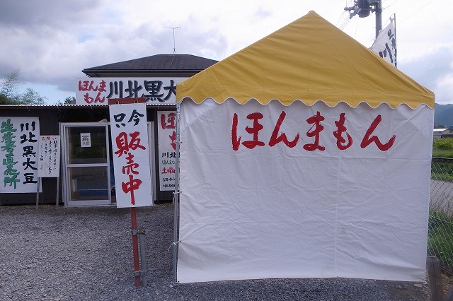 黒大豆の畑の横、“ほんまもん”と書かれた看板が目印になっている直売所の駐車場に車を着けて、黒大豆の枝豆を買いに中へ入ります。