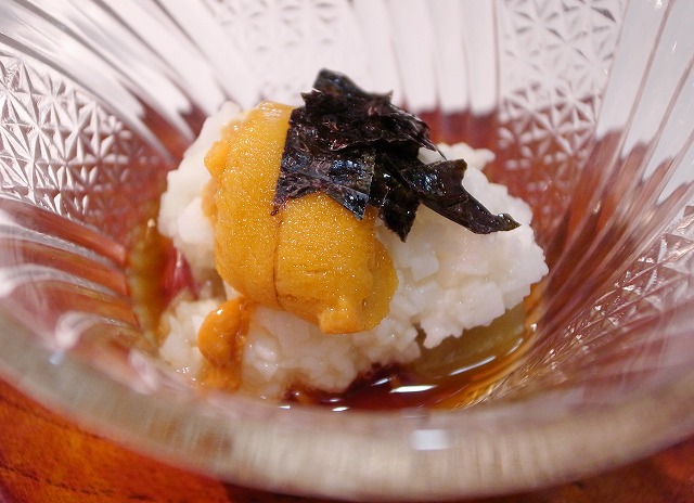 そして、焼き茄子のトロロ掛けにはウニが添えてありました。
