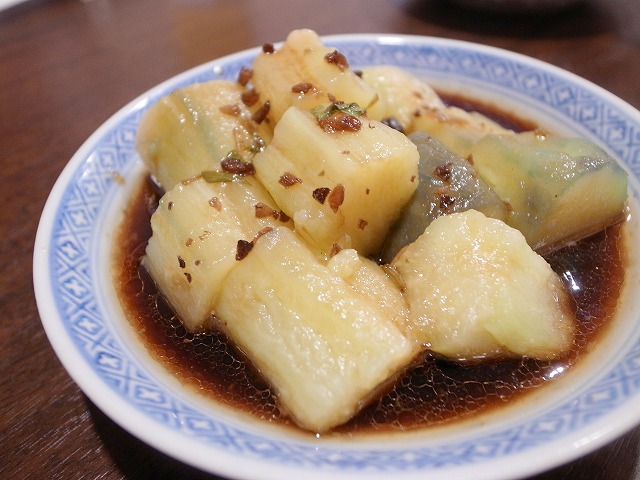 茄子の冷製。 ザーサイ サンマの黒酢煮