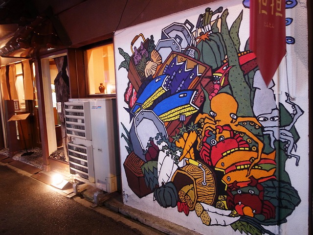 お店の壁には鮮やかな色使いの絵が描かれています。