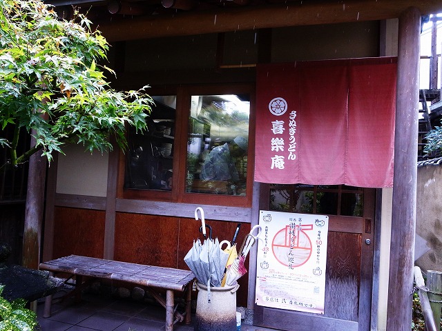お店の前には、大きな提灯があり、“さぬきうどん 喜楽庵”と書いてあります。