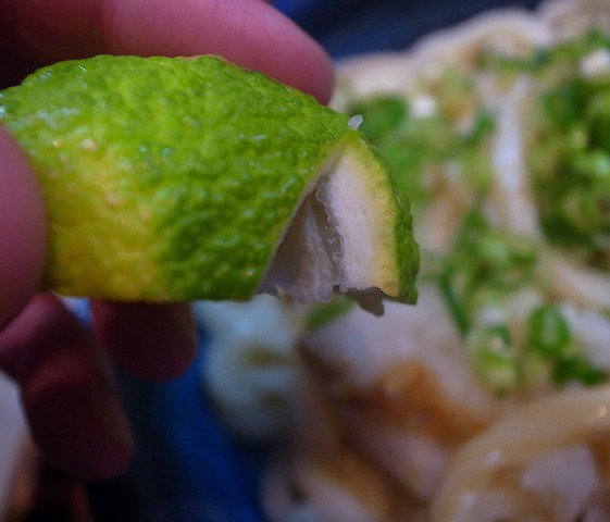 半分ほどいただいて、酢橘を搾って違った味わいを楽しみます。