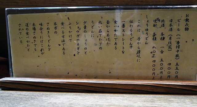 メニューの裏側には飲み物と、しょうゆうどんの説明が書いてあります。