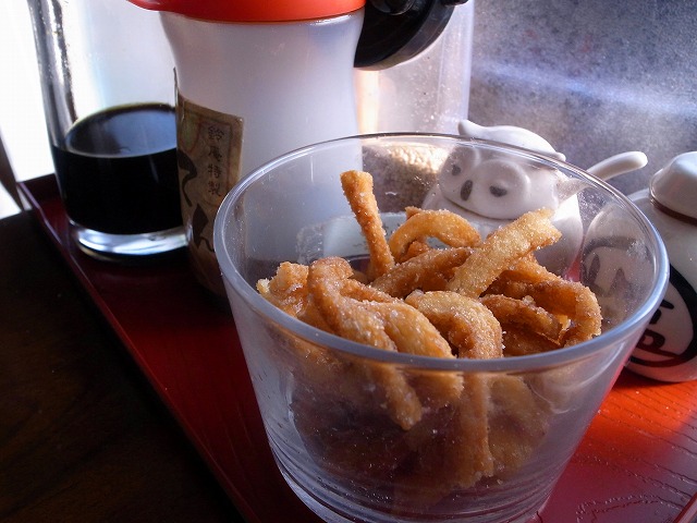 うどんができるまでの間、テーブルの上に置いてあるうどんかりん糖をつまみながら待つことにしましょう。