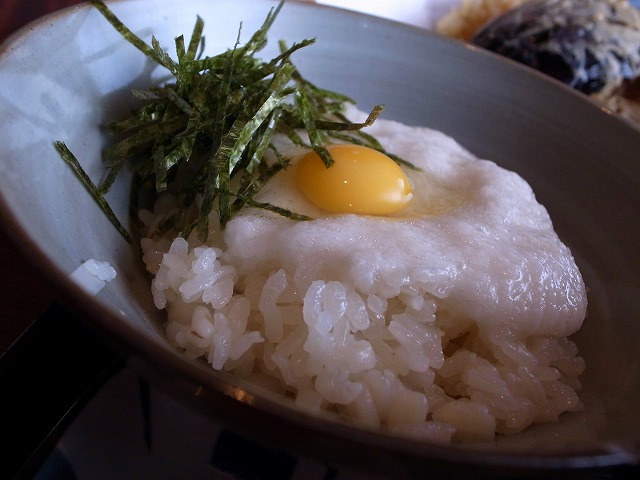 出汁で炊かれた麦とろ飯。