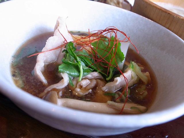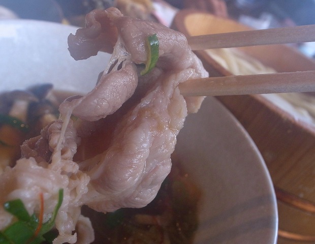 たっぷりお肉ときのこが入ったつけ汁。