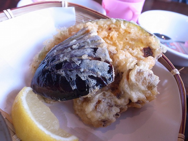 この日のてんぷらは、かぼちゃ、茄子、舞茸です。どれもうどんにピッタリですね。