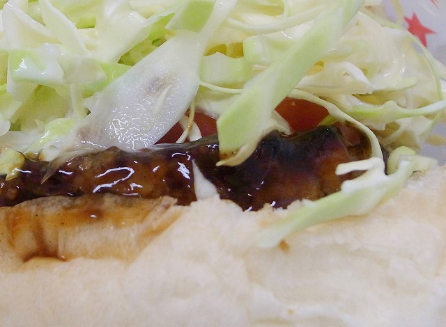 おぉ!ふっくらしたパンに大きなハンバーグとたっぷりのキャベツ。