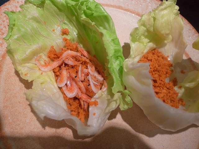 エビキーマの色と桜海老の色がレタスの緑色に良く映えてますよね(^^)