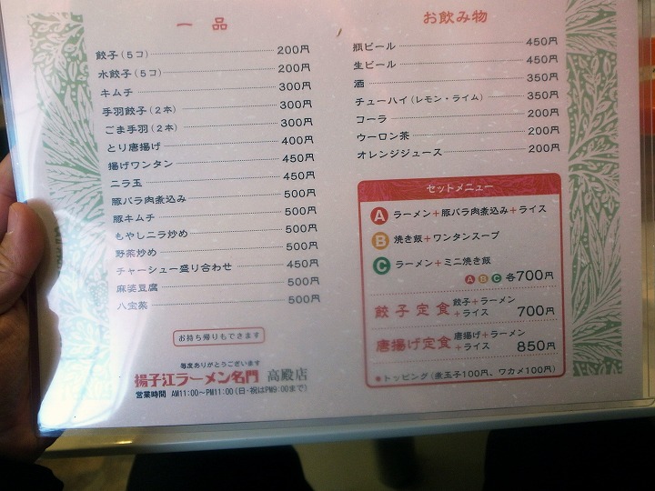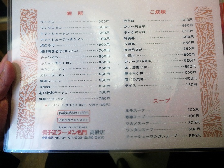 【揚子江ラーメン 名門 高殿店】