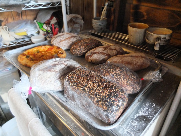 こちら、普通のパン屋さんと違って、家の横に釜を造り、その横の作業場で生地をこねて、窯で焼き、それを売っているって感じ。