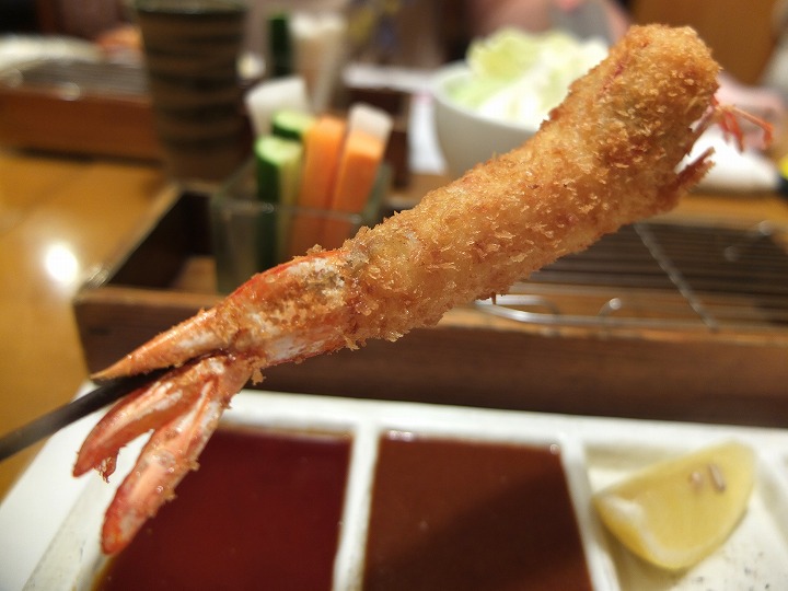 冷たいビールと車海老の串カツ、ちょっと贅沢すぎますね(^^)