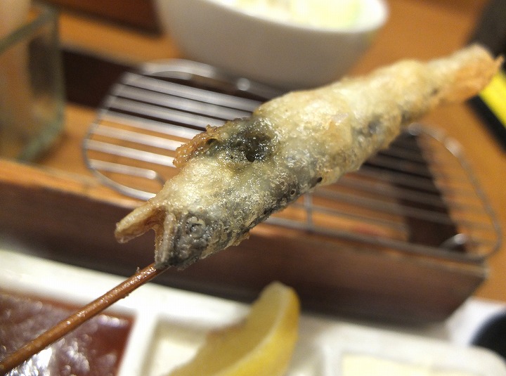 こちらは、串カツではなく、稚鮎の天ぷら。