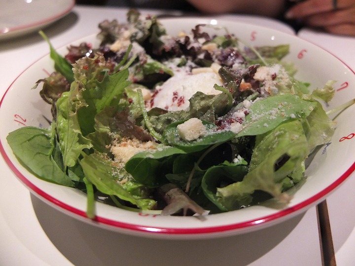 最初の料理はシーザーサラダ。